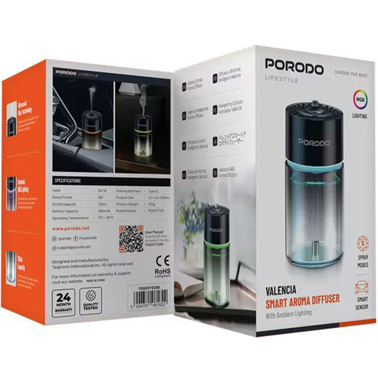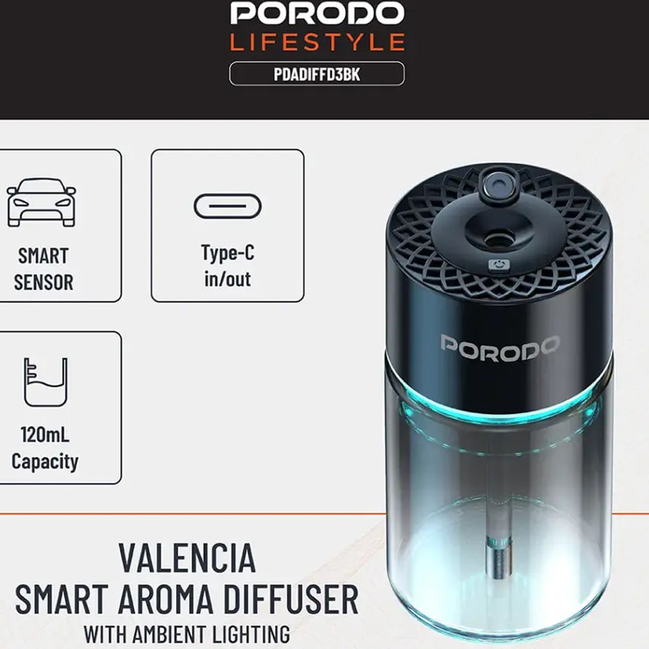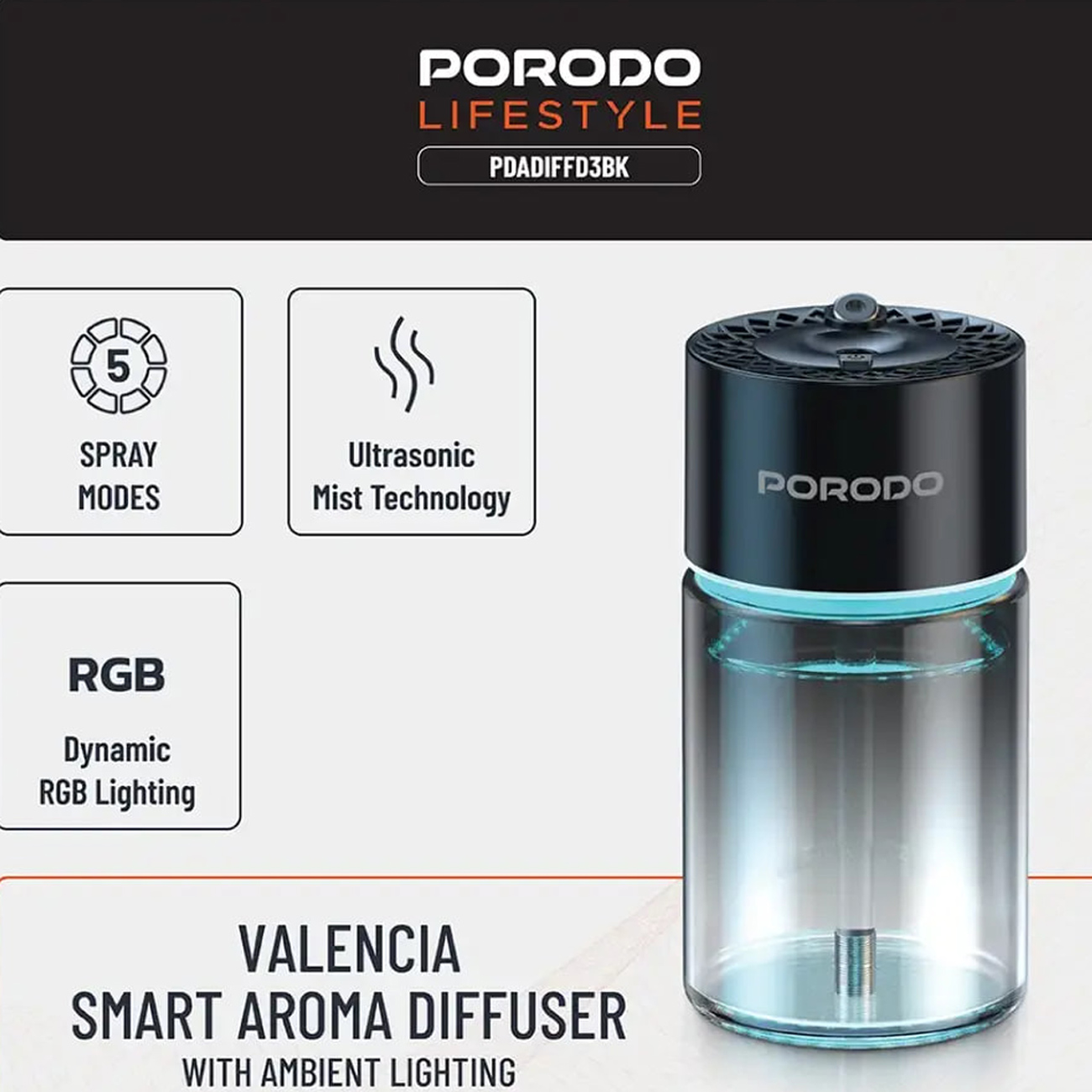 Porodo Lifestyle Valencia Smart Aroma Diffuser PDADIFFD3BK