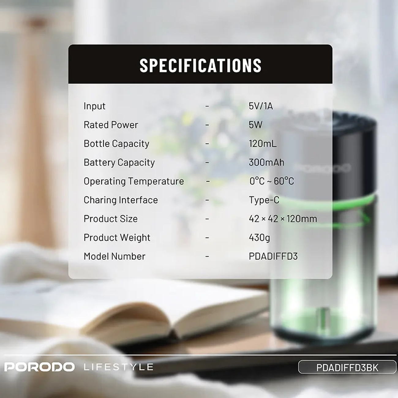 خوشبو کننده هوشمند و بخور سرد 120 میلیلیتر پورودو PDADIFFD3BK