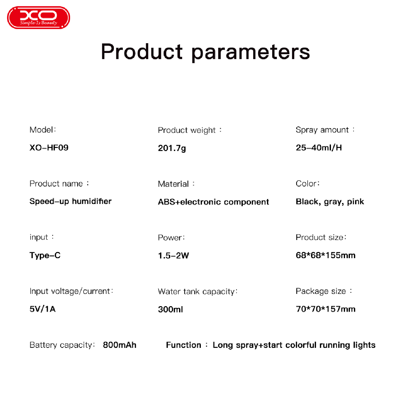 XO-HF09 Speed-up Humidifier Water Tank Capacity 300ml